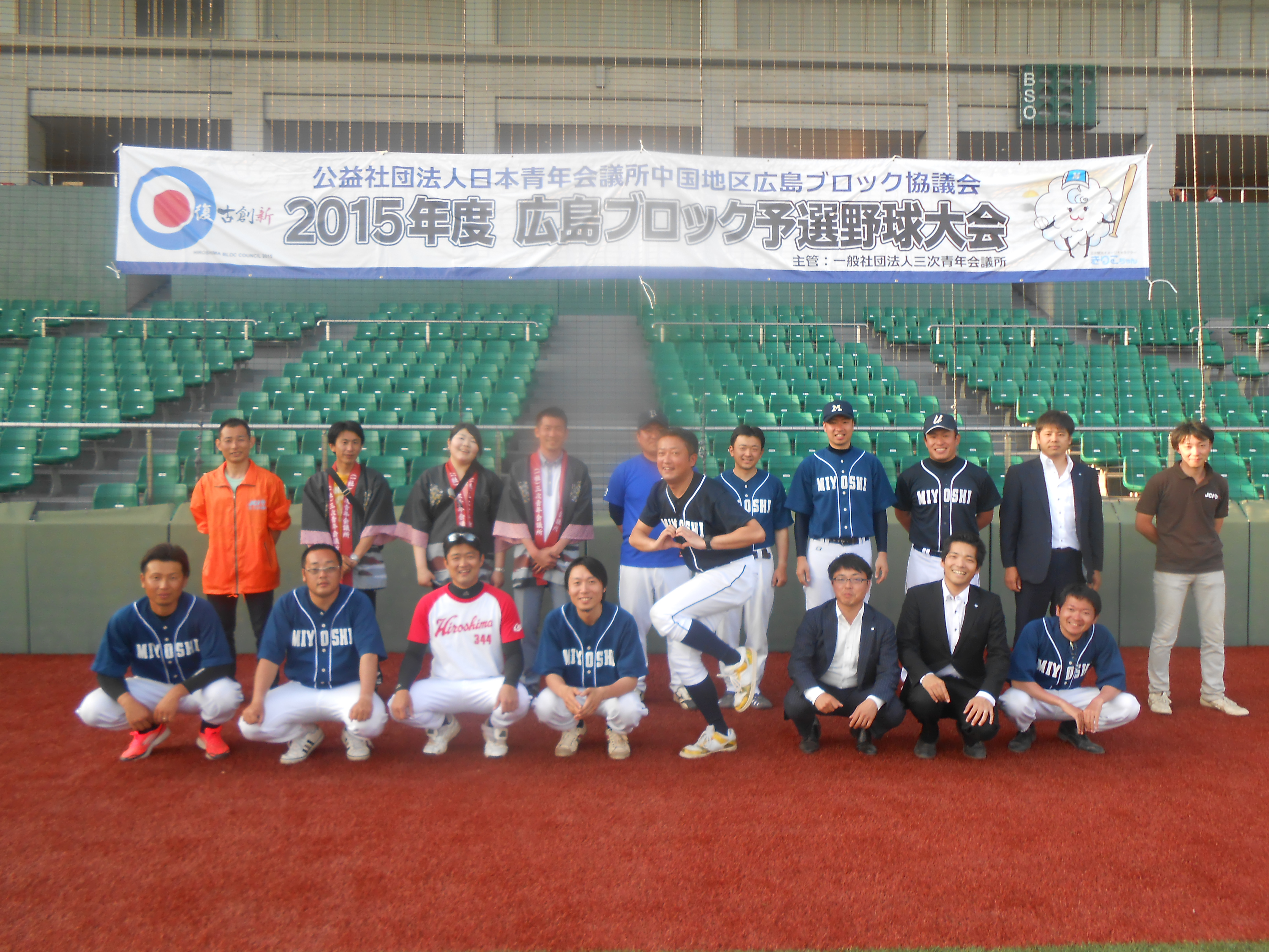 予選野球大会の設営を手伝ってくださったブロック役員や委員の方々との記念写真